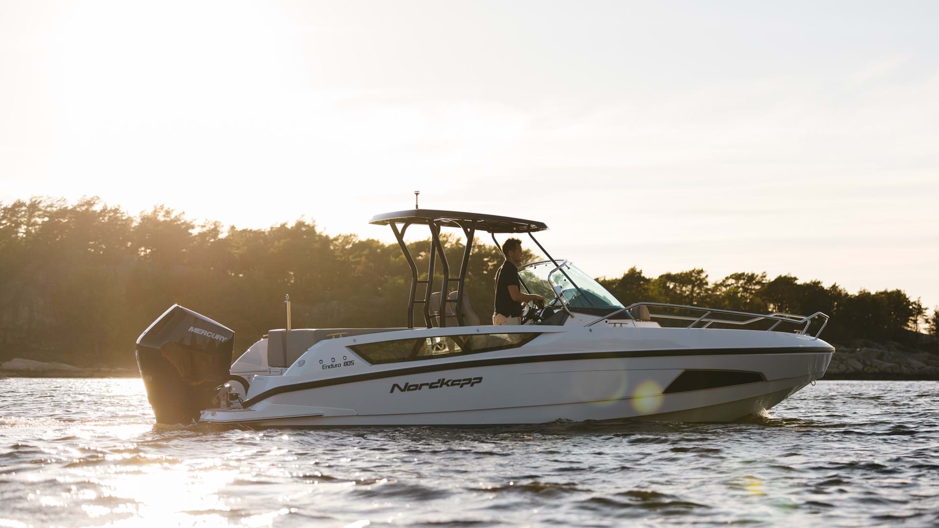 The perfect summer morning begins with a leisurely cruise in the Nordkapp Enduro 805 T-top, an 8-metre centre console boat with a rigid roof above the helm. It's a time to escape the daily grind, leave the phone on silent, and embrace the tranquillity of the open water.