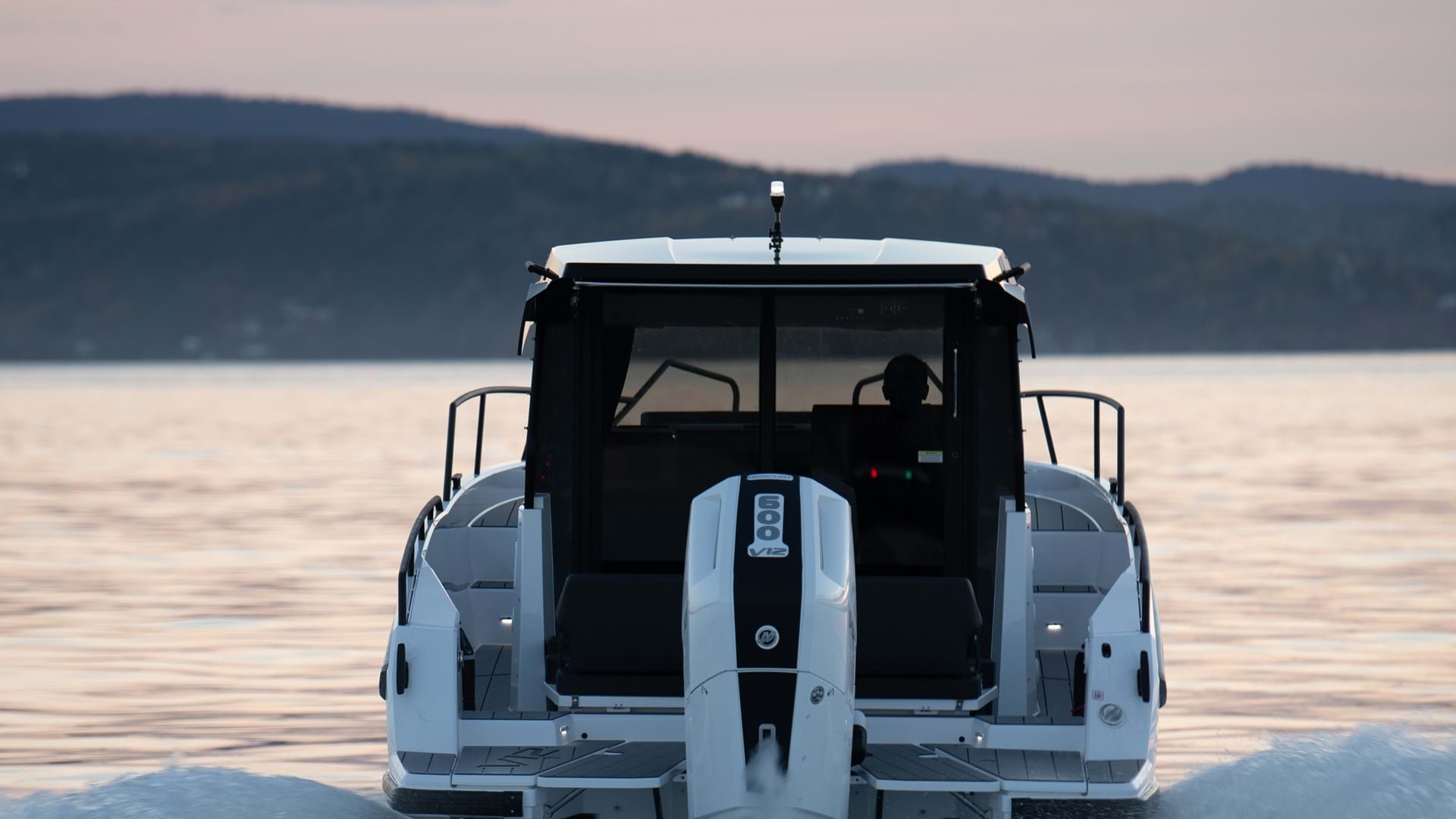 In 2020, we launched our flagship model, The Coupe 905. A 9-meter vessel that would push the limits of what a wheelhouse boat can be. Everything about the Coupe calls for adventure; it is a sporty, driver-friendly boat with a steep V-shaped hull. It is the type of boat that whispers in your ear to go and uncover what lies beyond the horizon as soon as you sit down at the helm. And it already packed a punch when it came to power, carrying twin 250 hk engines. So, when Mercury unveiled their new Verado 600 engine, the world's first V12 outboard, delivering a 7.6-litre displacement and 600 horsepower, we knew we had the perfect starting point to create the next evolution of wheelhouse boats.