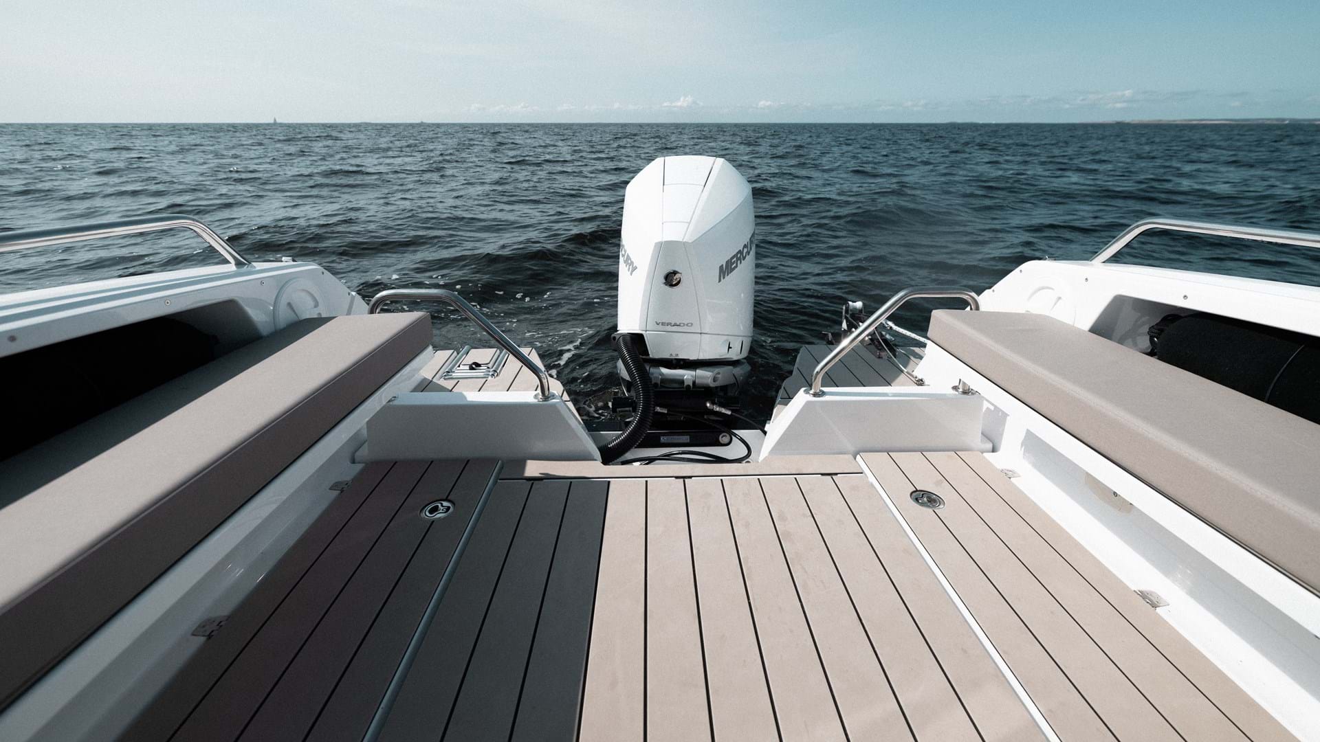 The stern of the Coupe 780 exemplifies Nordkapp's commitment to blending sophisticated design with practical features, offering a harmonious space where every detail contributes to an exceptional boating experience.