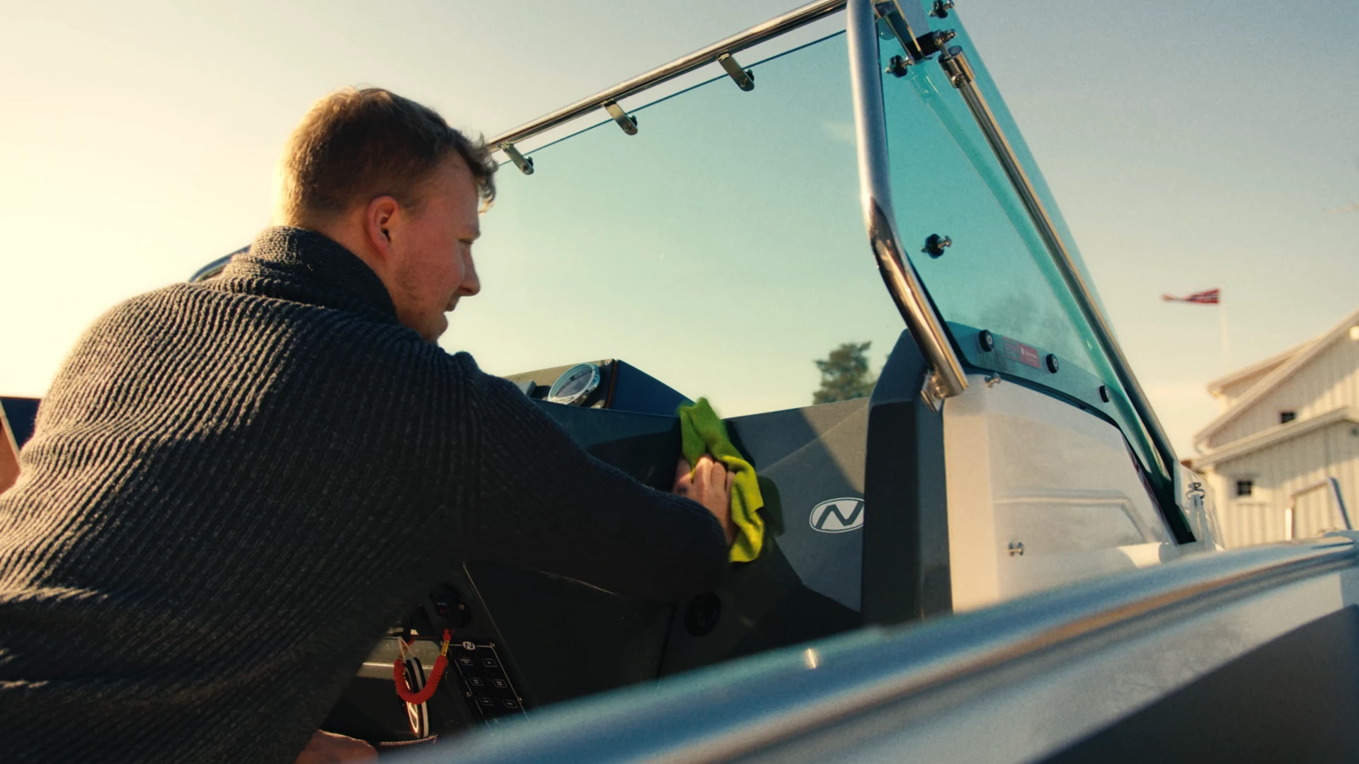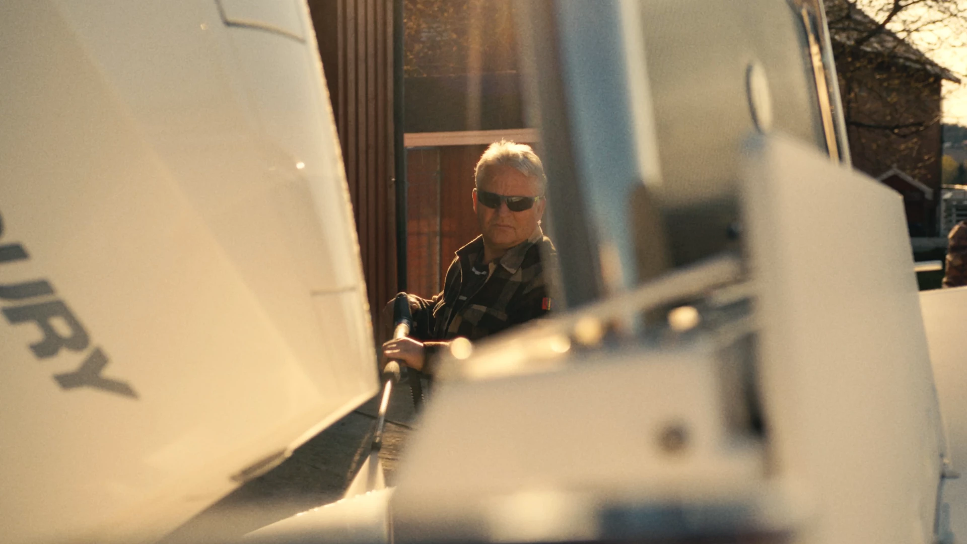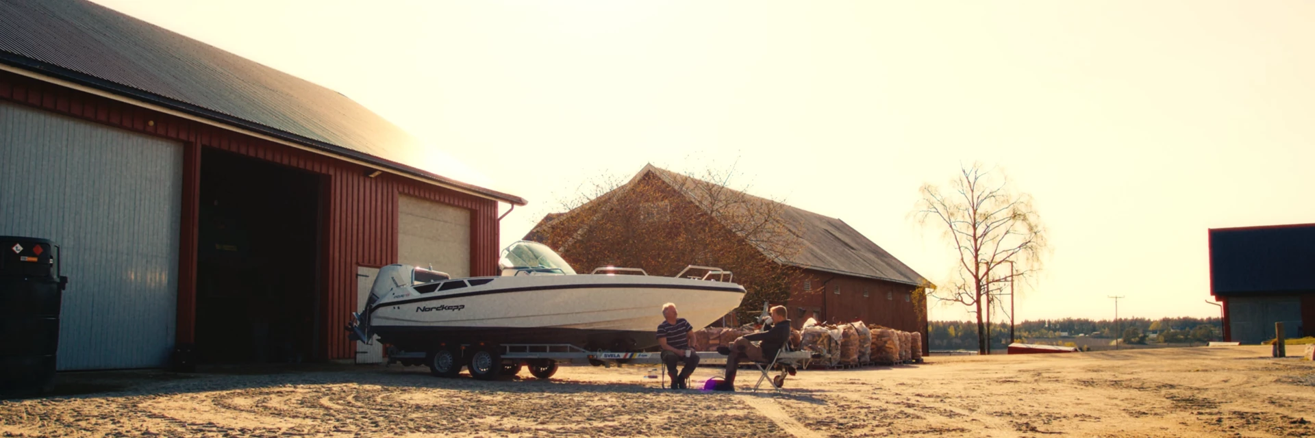 As they head out to the garage on the farm, where the boat is winterised, the world starts shifting from the quiet of pre-dawn to the bright potential of the day. With a full day ahead at the farm, they put their phones on silent—today, the outside world can wait. The soundtrack to their work is a mix of classic 80s rock, setting a rhythm to their movements as they go through the motions. Inspecting the hull, checking the engine, and testing the electronics become not just necessary tasks but acts of care, each step bringing them closer to the water.
